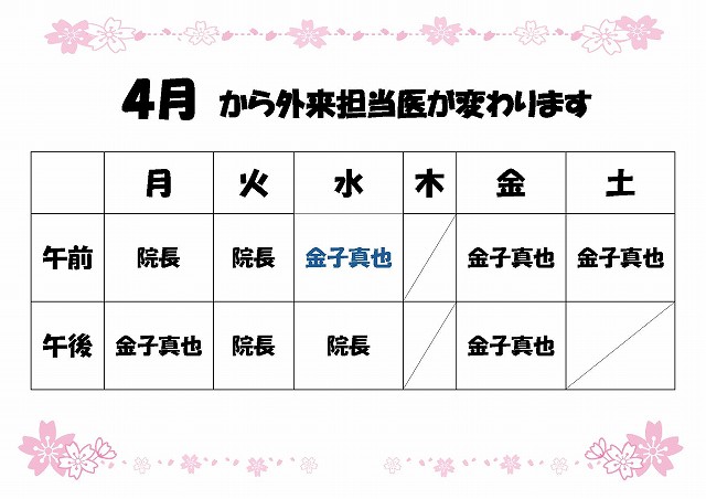 | 診療時間 | 月 | 火 | 水 | 木 | 金 | 土 | 日 |