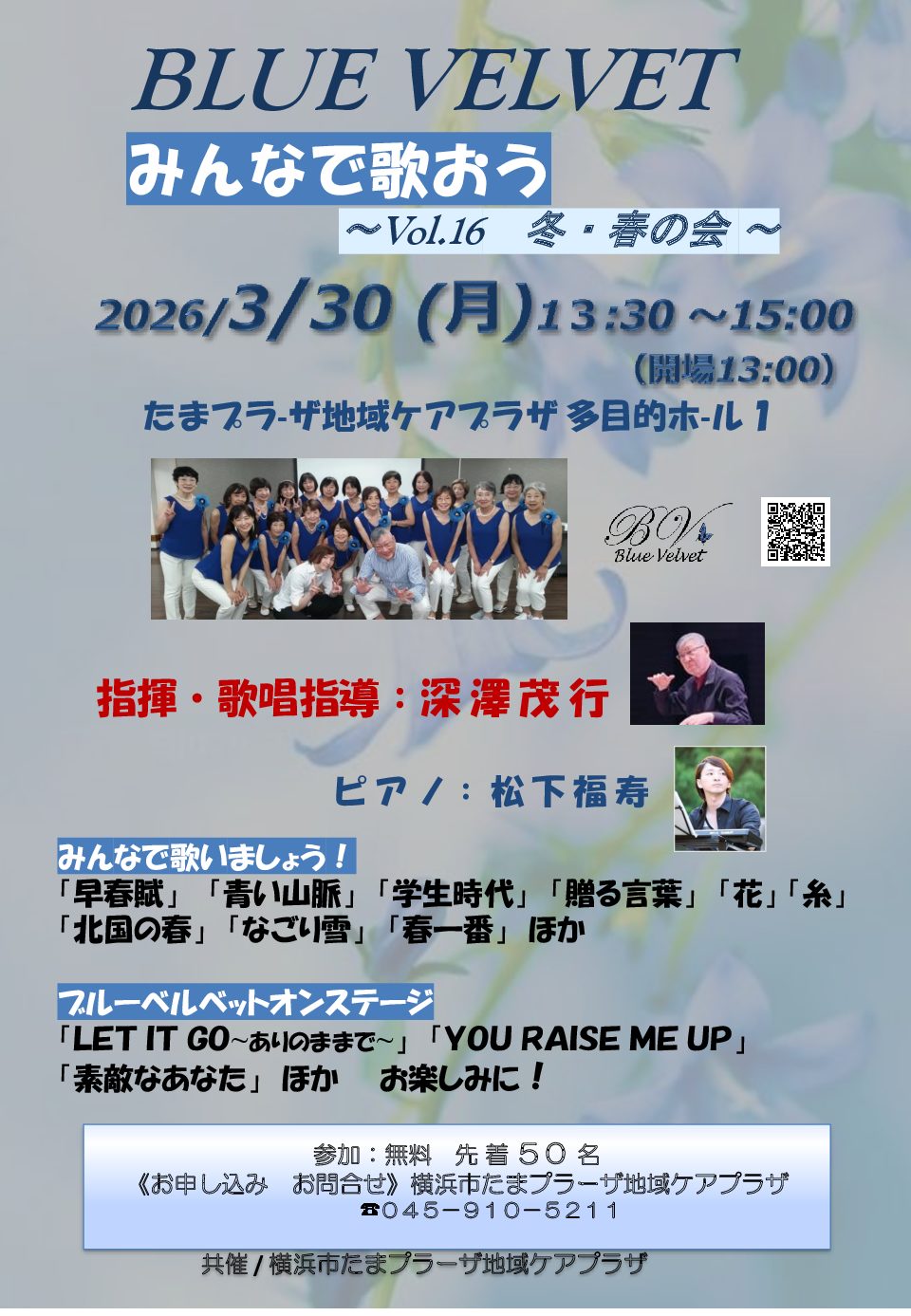 みんなで歌おうVol.16 ~冬・春の会~3月30日(月)たまプラーザ地域ケアプラザ